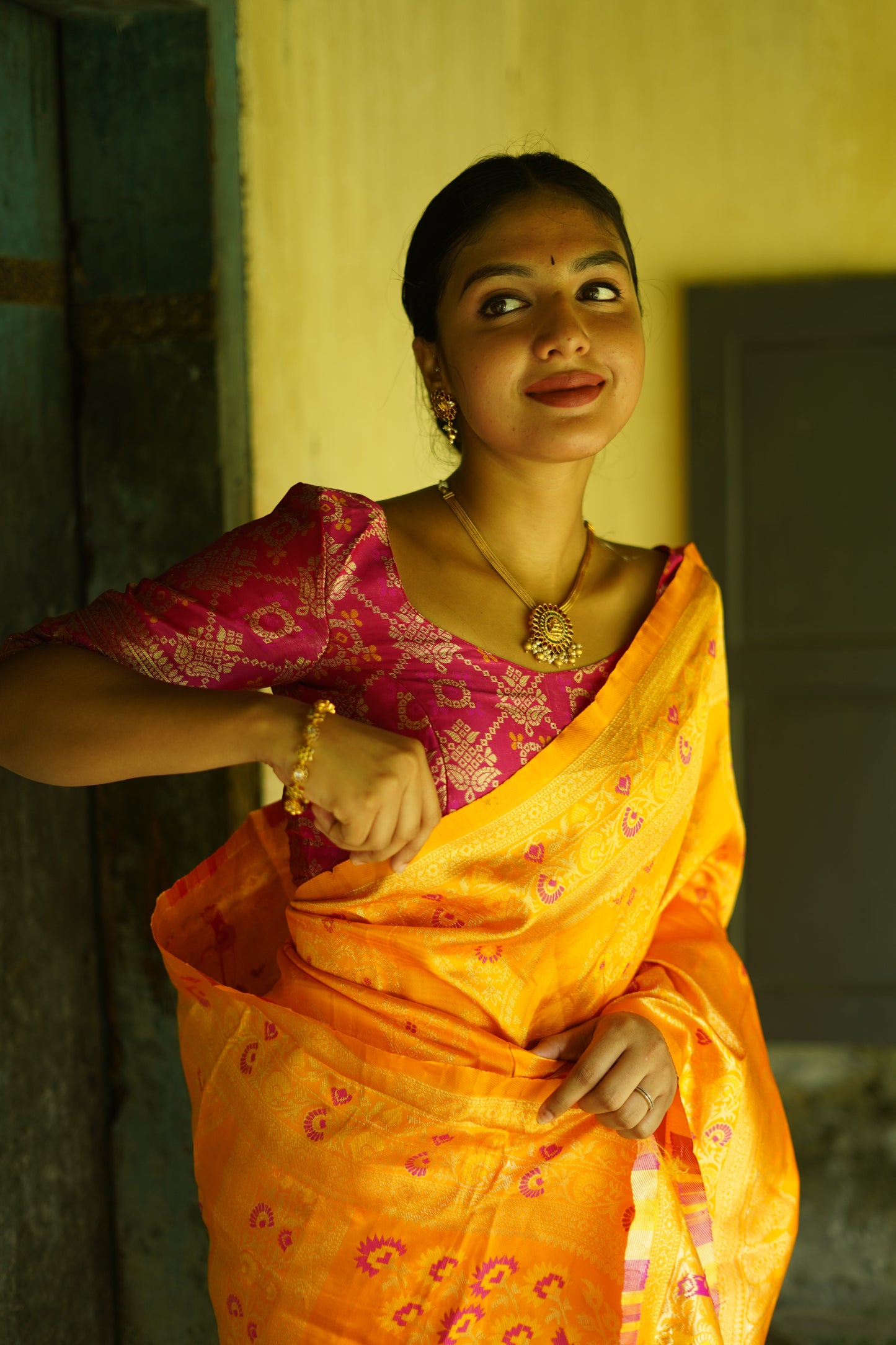 Yellow Pure Soft Silk Saree With Twirling Blouse Piece